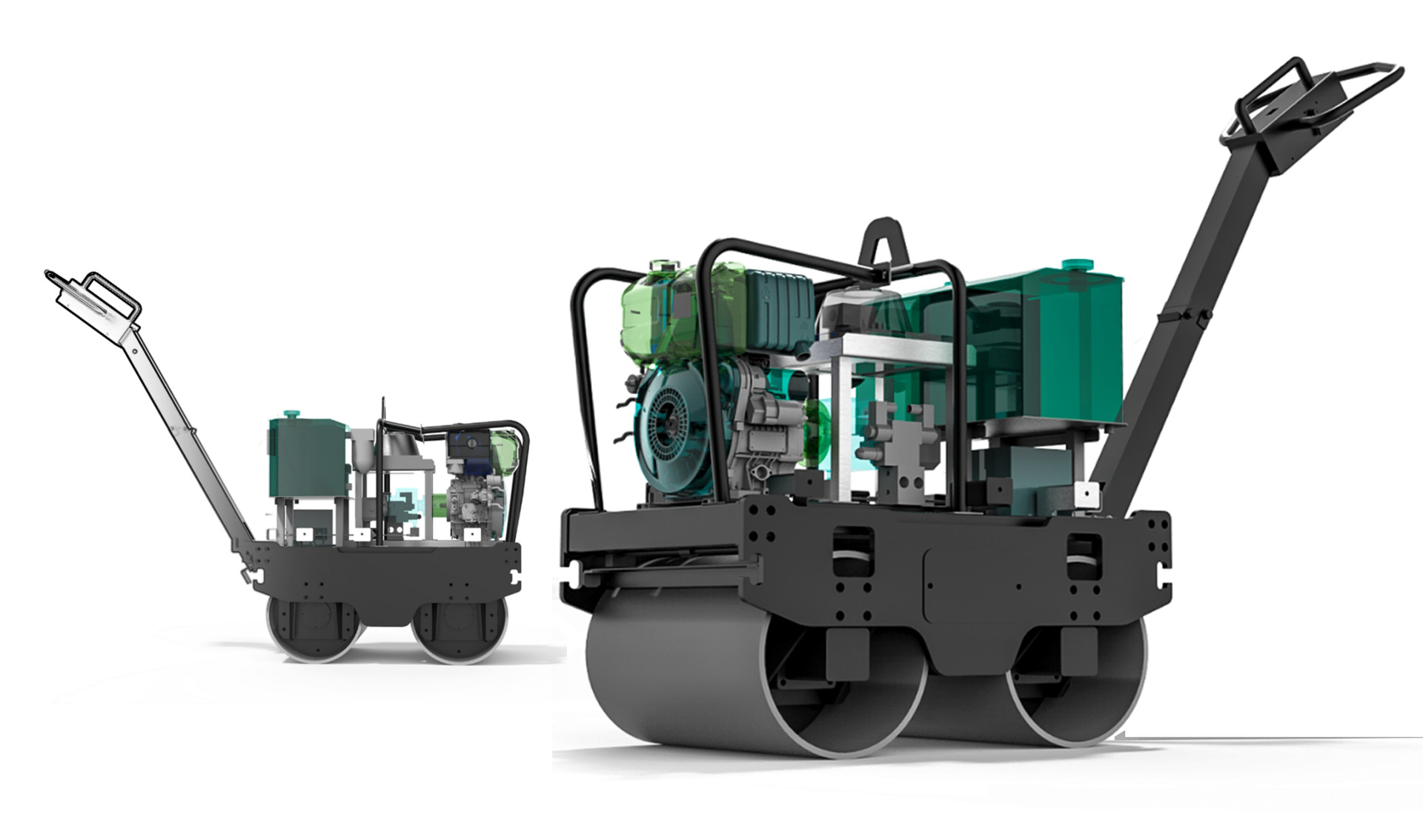 While designing the chassis, a frame-in-frame structure was chosen over a single plate platform to reduce the vibrations travelling upwards to the handle and also for better heat dissipation. The frame structure consists of 3 parts - the vibrating frame, the engine frame and a tank frame. Vibration mounts are used between frames for a double-dampening effect. The design and engineering concepts were translated into a prototype for concept validation, user feedback and for testing the equipment in its working condition.